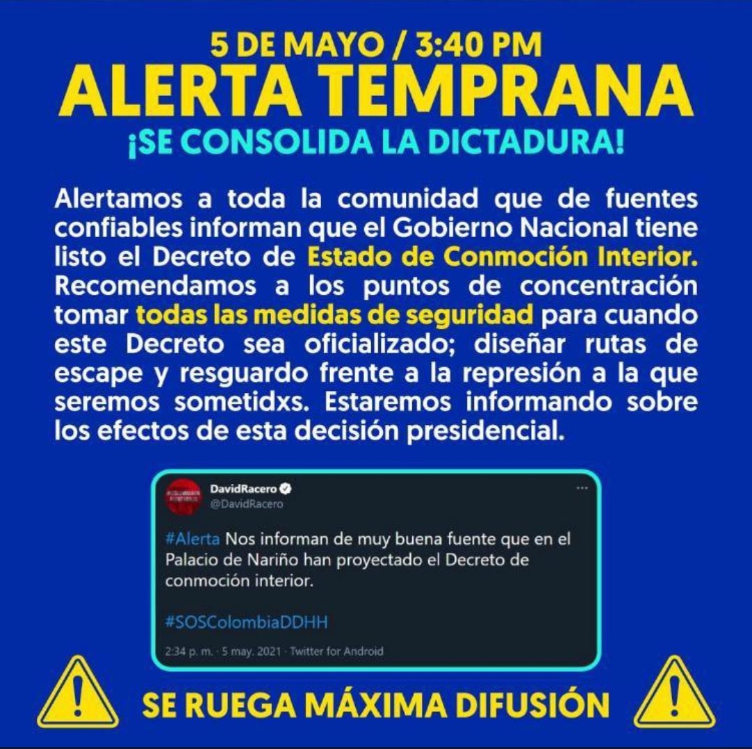 Presidente duque, urgente conmoción interior y militarizar ciudades y carreteras, detrás de esta destrucción y caos desde su introducción en la constitución de 1991, el estado de conmoción interior ha sido declarado en cuatro oportunidades. En el caso del estado de. Establecer restricciones a los medios de comunicación, radio, televisión, para que no se emita ningún tipo de. Estado de conmoción para darle vía a los asesinos de colombianos !!! A través de sus redes sociales, esperanza gómez advirtió a sus seguidores sobre la gravedad del estado de conmoción interior.